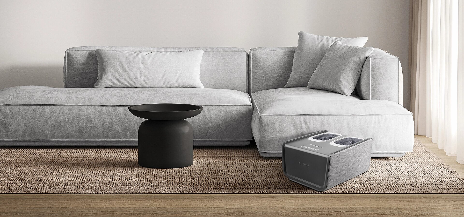 Проводит не только эффективный массаж ног, но и является декоративным элементом интерьера – стильным, удобным пуфиком.